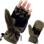 Fleece fingerless gloves/mitten great for cold weather. Breathable polyester fleece shell, fingerless glove with retractable mitten top that secures to top of glove with hoop and loop back. Elastic wrist with locking cinch cord. This is the perfect item for those who like to keep warm with gloves but still have easy access to their fingers. Comes with cloth palm and thumb patches.Colors available olive and black.