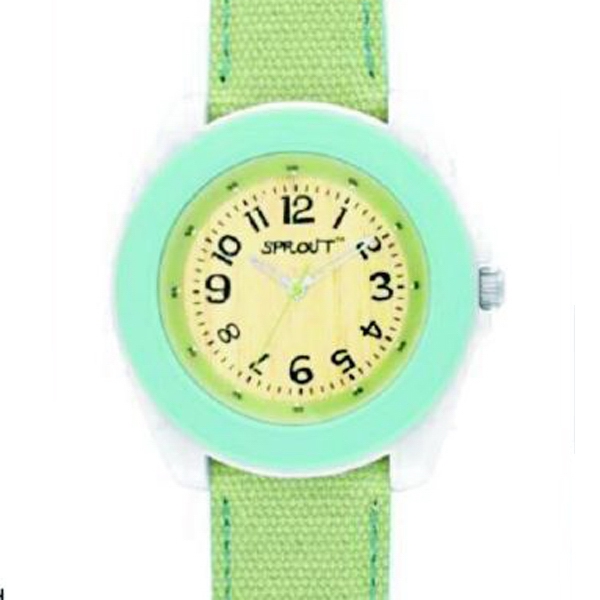 Here are watches made from corn resin that is simiarl to synthetic plastics and will not break down during regular wear and use. Corn resin is 99% biodegradable to carbon dioxide and water within 365 days and made from a renewable resource. These watches are also made from organic cotton, without the use of chemicals. Growing conventional cotton requires enormous amounts of pesticides which has a huge environmental impact and health risks for those working around it. Some of these chemicals are known to be the most toxic chemicals in the world finding their way into the ground and contaminating drinking water. Organic cotton is grown using low impact on the environment. Organic production systems replenish and maintain soil fertility, reduce the use of toxic and persistent pesticides and fertiliziers and build biologically diverse agriculture. Bamboo is considered eco-friendly based on its natural fiber, quick growth plant and is a renewable plant that can grow back after its three to five year harvesting period. Mineral crystal-Most lenses in the medium price range of watches are made from plexiglass, a type of synthetic plastic. Sprout lenses are made from Minderal crystal, which is a type of glass, made from sand. Mercury free battery– Mercury is a neurotoxin which is harmful to both animals and humans. Exposure to small amounts of mercury over a long period may cause negative health effects, including damage to the brain, kidney, lungs and developing baby. Recycled fibers-Sprout watches are made from at least 80% post-consumer fibers being both recycled and recyclable.