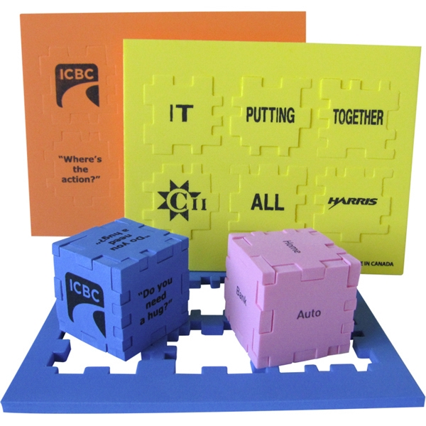 Here is an item I have loved and bought as my own self promo. These bright and colorful lightweight foam puzzles come flat and can easily be mailed without adding much postage. Arriving flat, you simply put the pieces together forming a puzzle cube which will carry your message on each and every side. Fun to put together and interesting to read. These puzzles make great giveaway items. Colorful, lightweight and inexpensive to both purchase and mail. What are you waiting for?