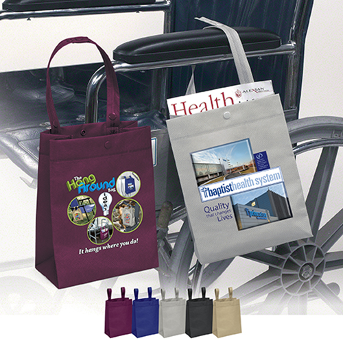 This hand around bag has many useful uses. Great for car dealership service centers to hand out when people leave their cars for service to put all their valuables in to take with them. Then you can use it and take it to sporting events, concerts and the beach to hang on the chair to keep your things safe. Another great use for this bag is nursing homes, senior centers and the elderly to attach to wheelchairs, walkers and more. Size is 8 x 10 x 4. This is also a great hospital gift to give to patients to attach to bed, walkers and more.