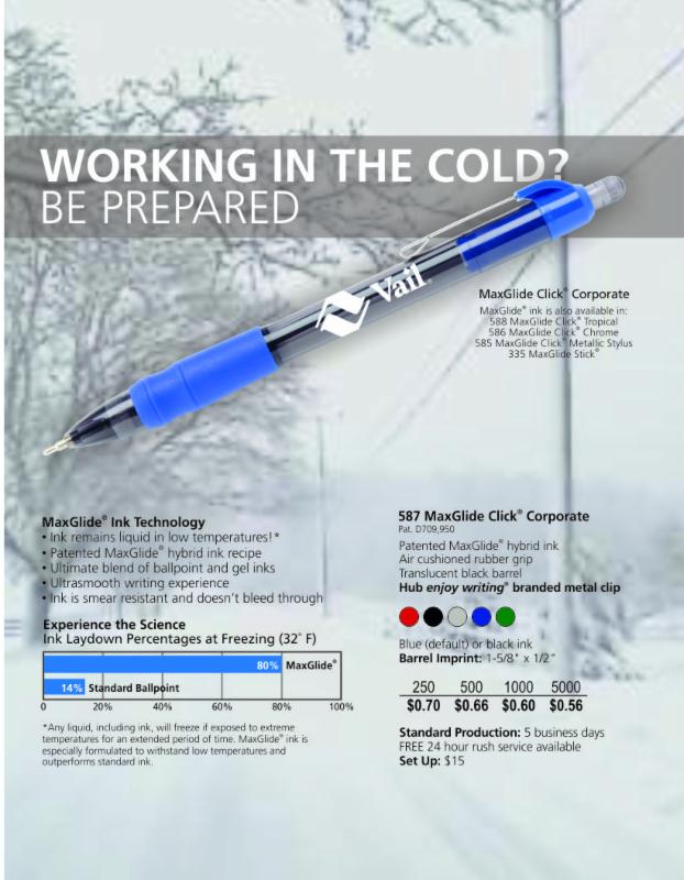 *Any liquid, including ink, will freeze if exposed to extreme temperatures for an extended period of time. MaxGlide® ink is specially formulated to withstand low temperatures and outperforms standard ink.