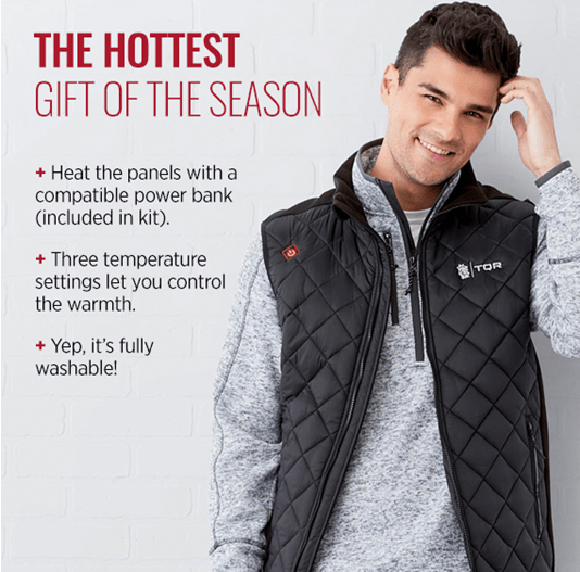 Whether you are looking for a gift for yourself or someone deserving that you know, these heated vests are perfect. Machine washable, and comes with a power bank that heat the panels with 3 temperature settings.