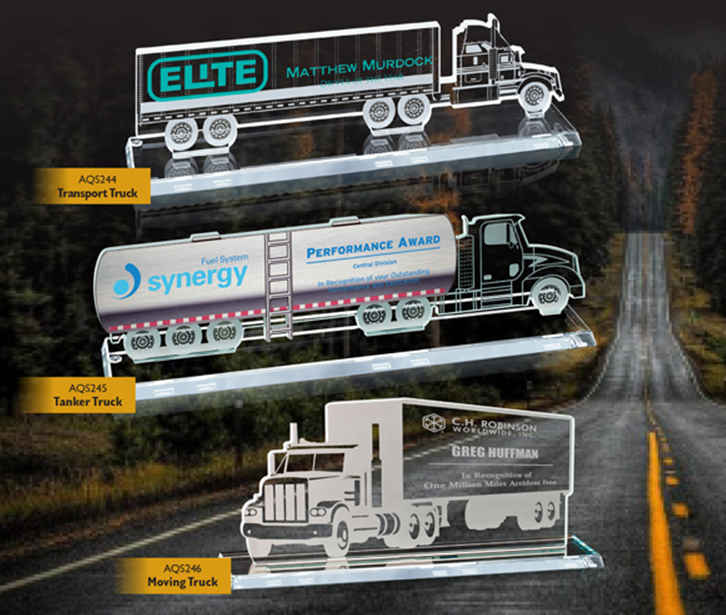 Let us say Thank You and send a reward to all of those delivery and trucker employees. These transportation acrylic awards are one way to show our appreciation.