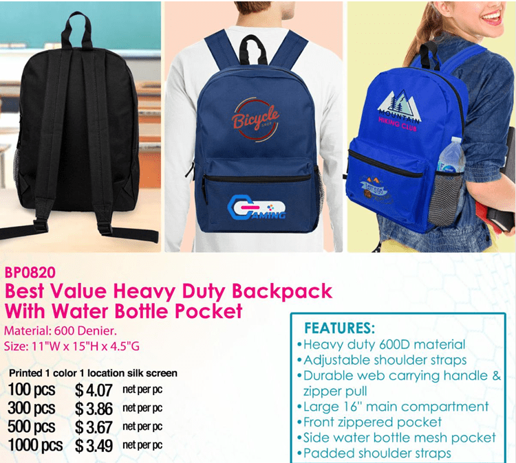 Backpacks are one of the most requested bags in the promotional industry along with grocery bags and totes.