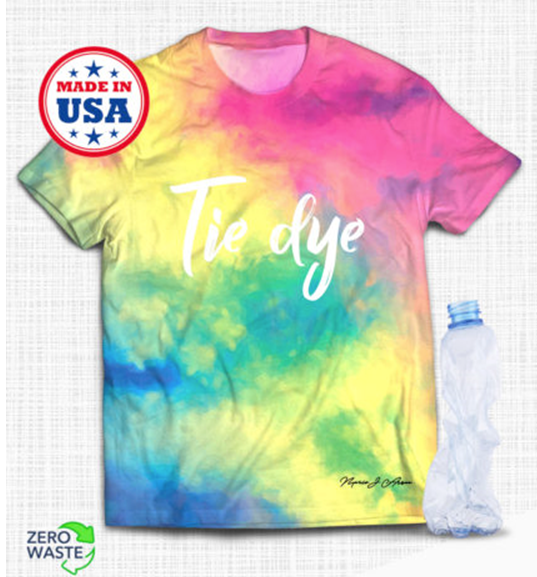 I always have to throw in sustainable products for you all to learn about. We have USA made T-shirts that are made from collected PET bottles that are sorted and shredded, made with plastic yarn and made into recycled poly sheets. The shirts are then printed with a full color tie dye or other design.