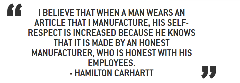 It was also when Hamilton Carhartt & Company was founded by its namesake (known affectionately as “Ham”) and began producing overalls with two sewing machines and a half-horsepower electric motor in a small Detroit loft. Early failures led Hamilton to focus heavily on market research, and after talking directly with railroad workers, he designed a product that truly fit their needs. Under the motto, “Honest value for an honest dollar,” the Carhartt bib overall was created and rapidly evolved into the standard for quality workwear.