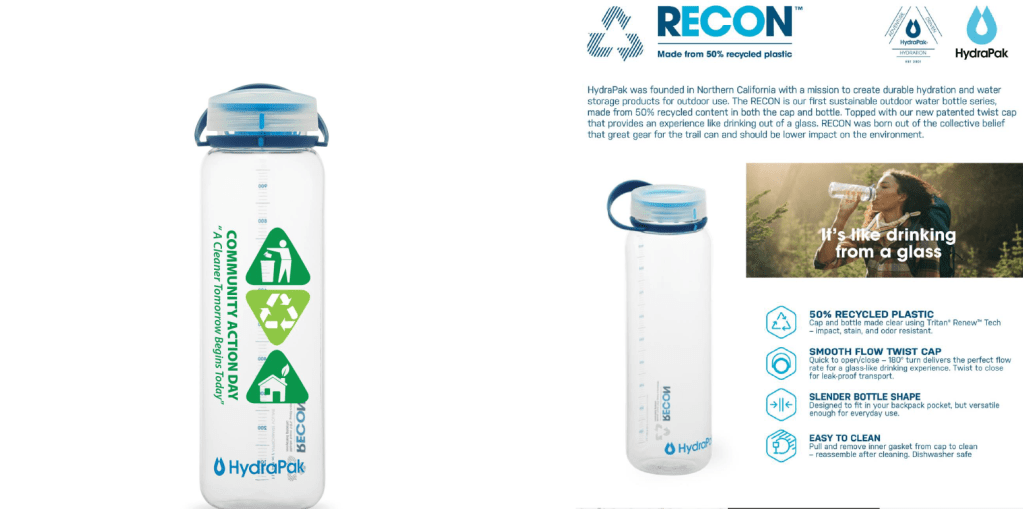 Comfortable and Easy to drink from, these bottles made from recycled plastic are a great item for those encouraging others to be more eco-conscious.