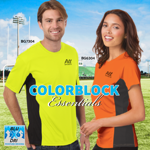 Colorblock shirts are one of the most requested apparel items we get and they are not always easy to come by. These shirts come with your branding colors. Think Red/Black, Black/Graphite/ Graphite/Black, Safety Orange/Graphi, Royal Blue/Black and Optic Yellow/Black.