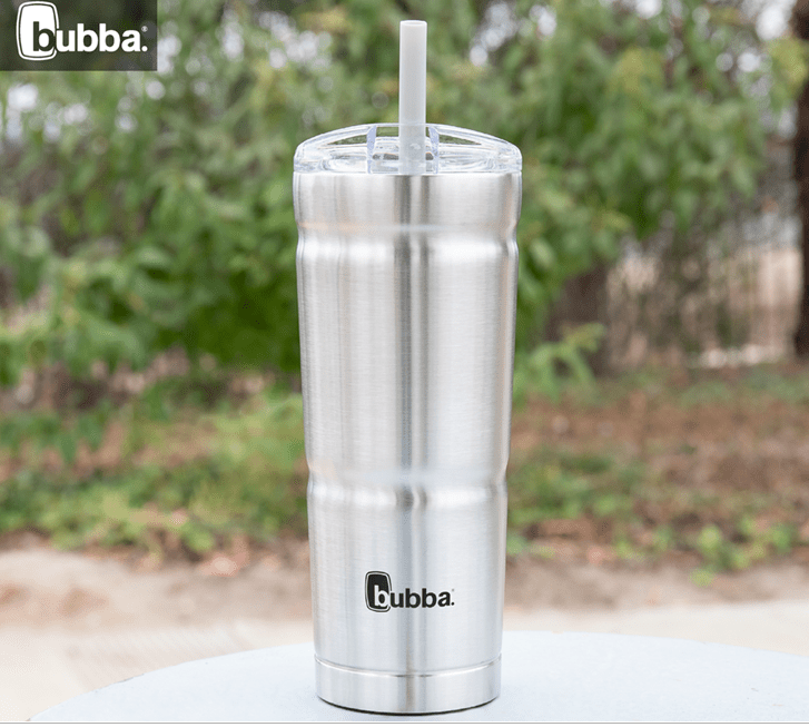 This 24 oz double wall stainless steel thermal tumbler with vacuum insulation, Eastman Tritan, copolyester push-on-lid with thumb tab, straw and stopper, and silicone base is the perfect item for the home of office.