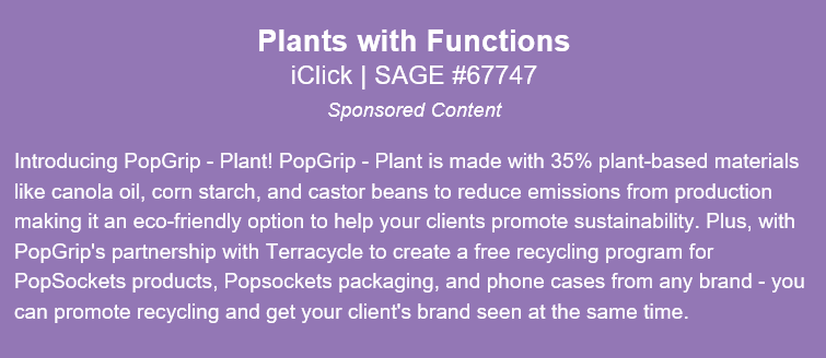 These Sustainable PopGrips are made from 35% plant based materials plus have the added function or partnering with Terracycle and PopSocket products to create free recycling programs.