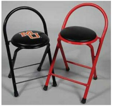 Compact-comfortable-convenient. Non-scuff feet to take onto court for timeouts. Padded vinyl seat on strong steel frame. Folds for easy storage in most lockers. Vinyl seat backs and cushions available.