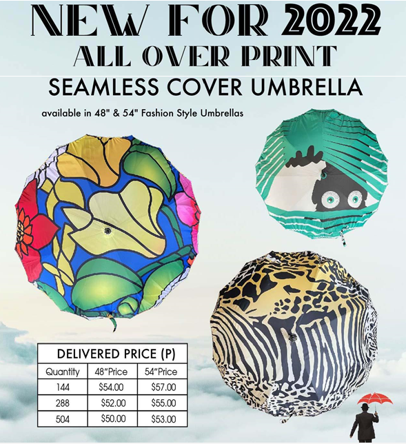 Our custom seamless all over custom printed umbrellas are perfect for you.