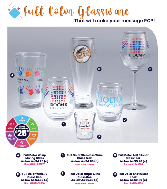 Glassware is more popular than ever and requests are coming in many times looking for full color branding.