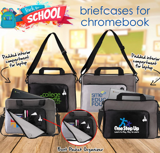 These briefcases come padded to carry your laptops and Chromebooks up to 13″ and 15″.
