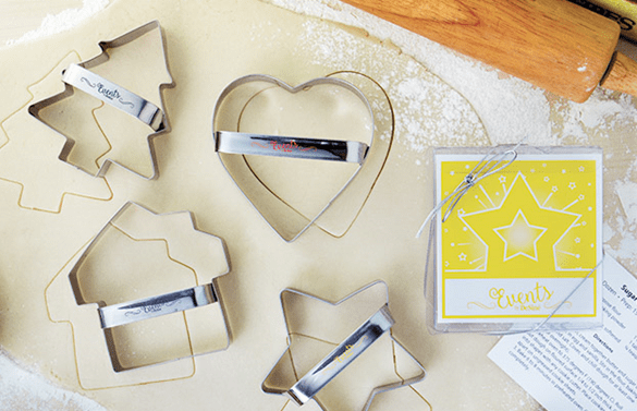Handing out metal cookie cutters with a branded card makes a great inexpensive giveaway for any holiday event.